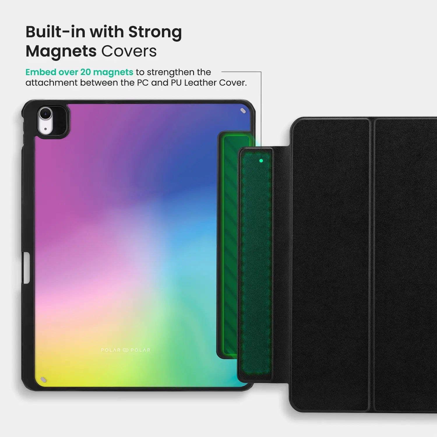 Embed over 20 magnets to strengthen the attachment between the PC and PU Leather Cover.