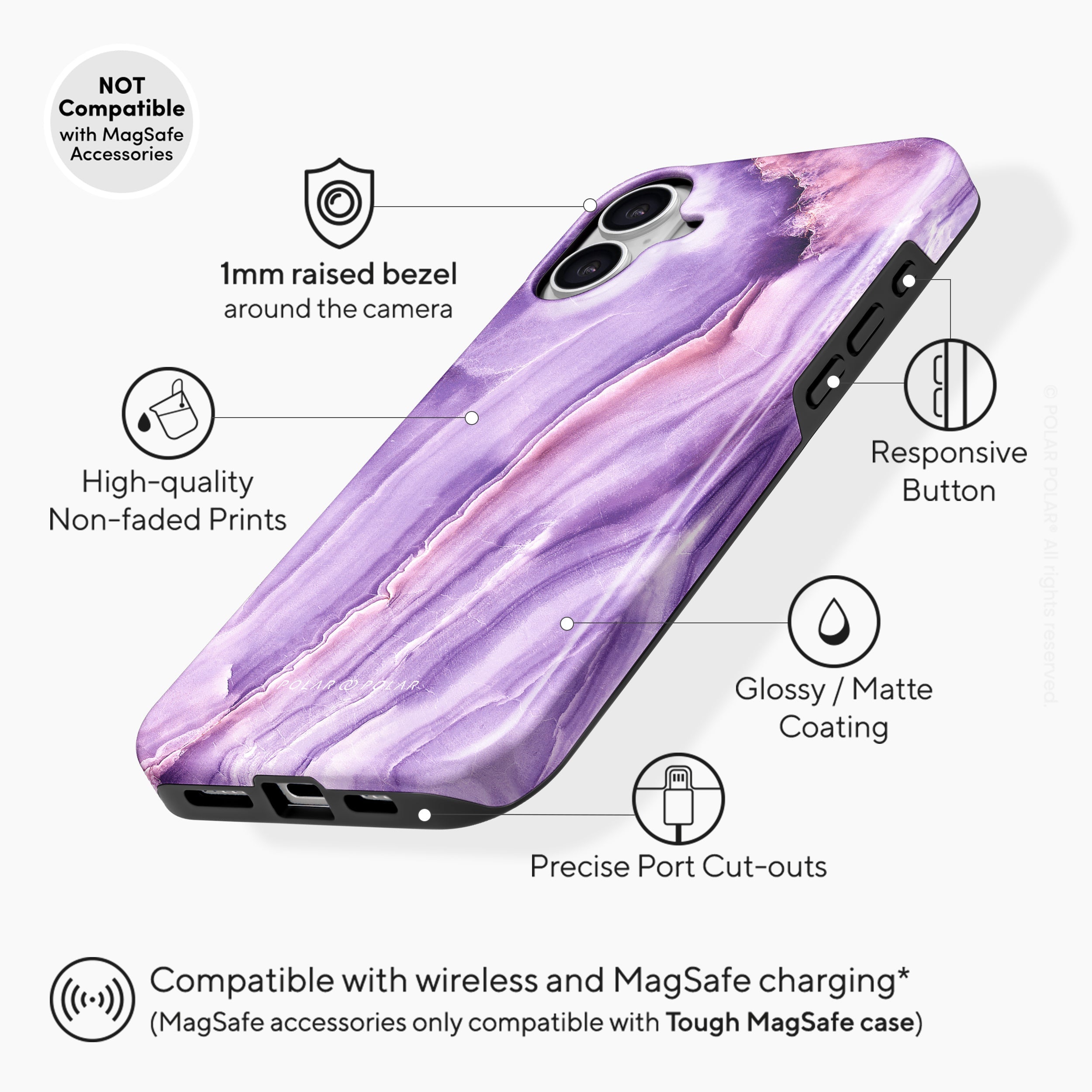 Compatible with MagSafe accessories such as MagSafe phone ring holder, MagSafe charger, MagSafe car mount and more.