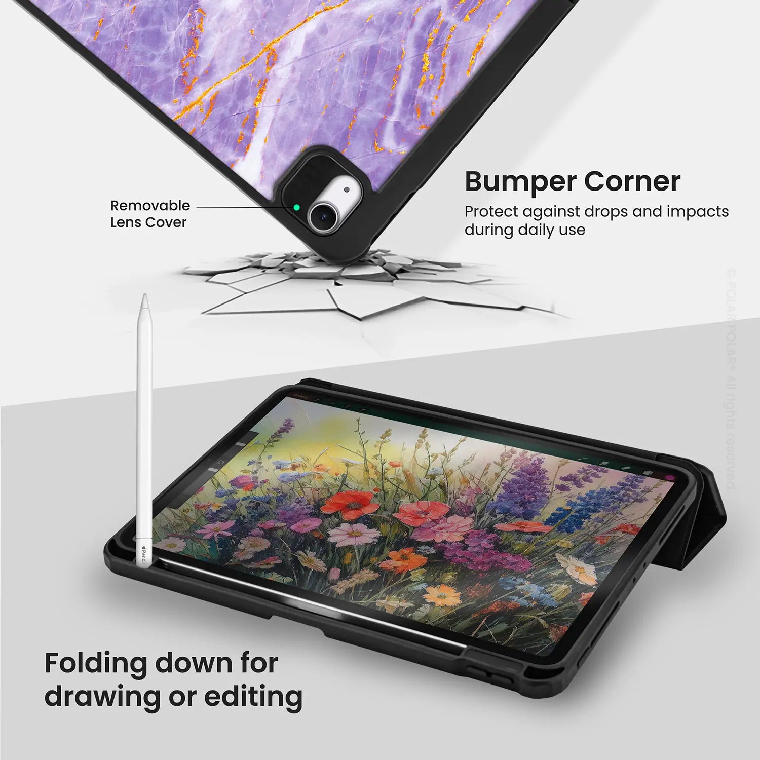 Open the cover to wake the iPad and close it to put it to sleep automatically. The pencil slot enables the Apple Pencil to charge while you're on the go.
