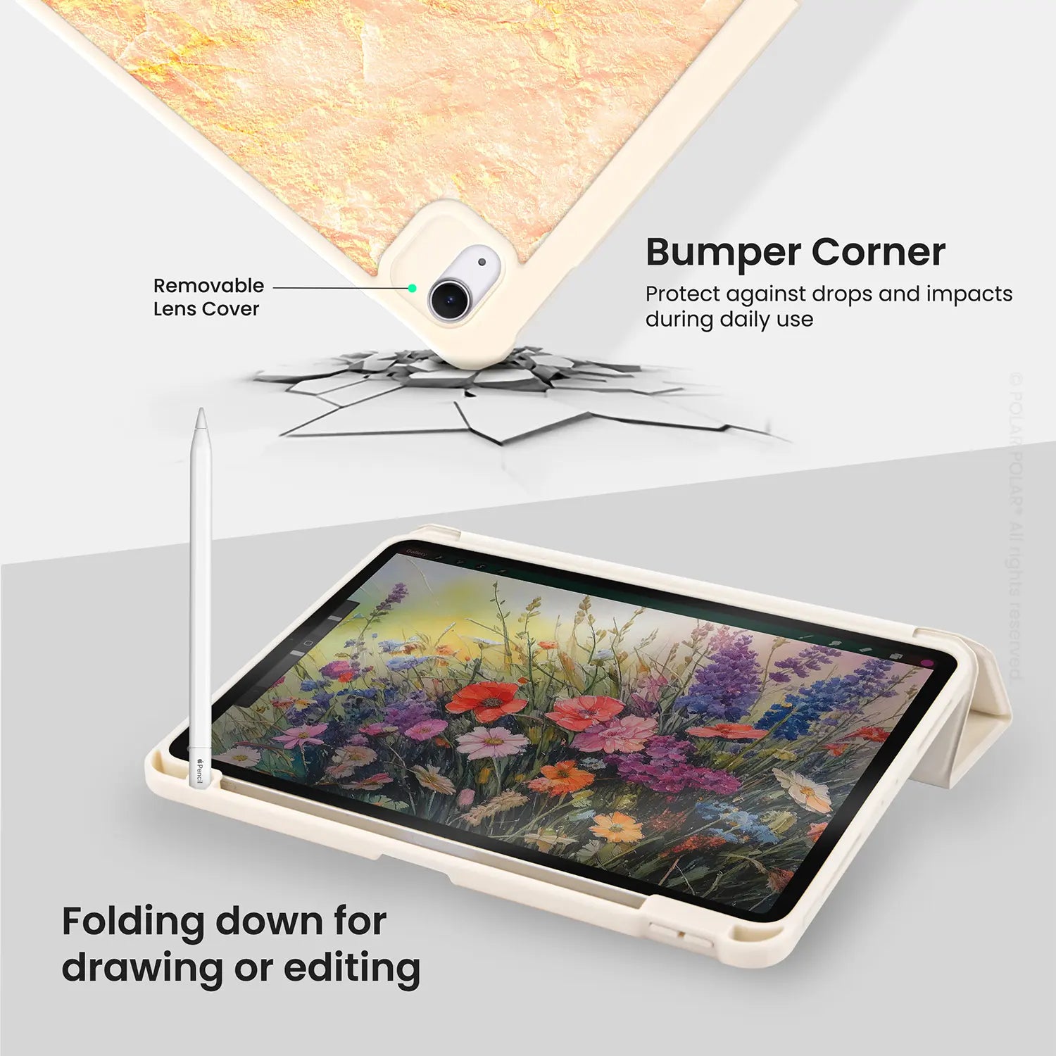 Open the cover to wake the iPad and close it to put it to sleep automatically. The pencil slot enables the Apple Pencil to charge while you're on the go.