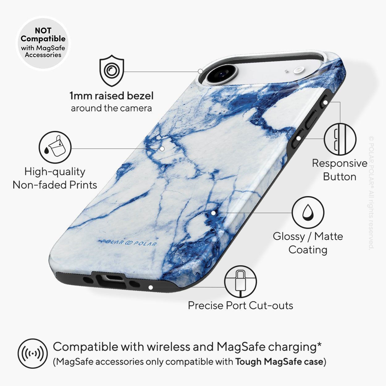 Compatible with MagSafe accessories such as MagSafe phone ring holder, MagSafe charger, MagSafe car mount and more.