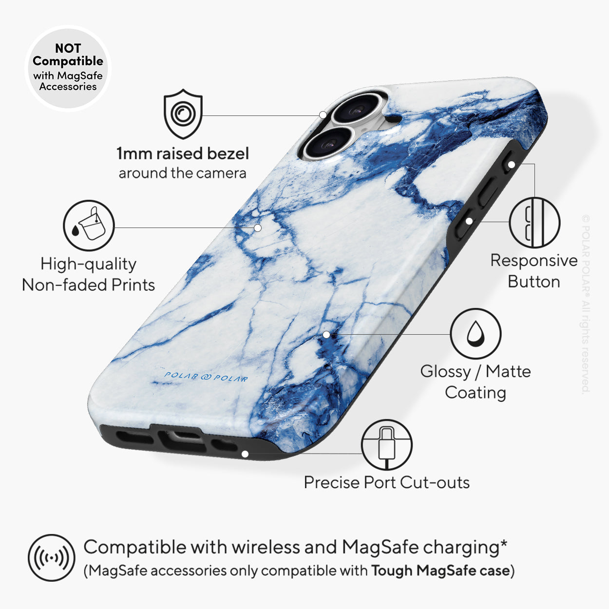 Compatible with MagSafe accessories such as MagSafe phone ring holder, MagSafe charger, MagSafe car mount and more.