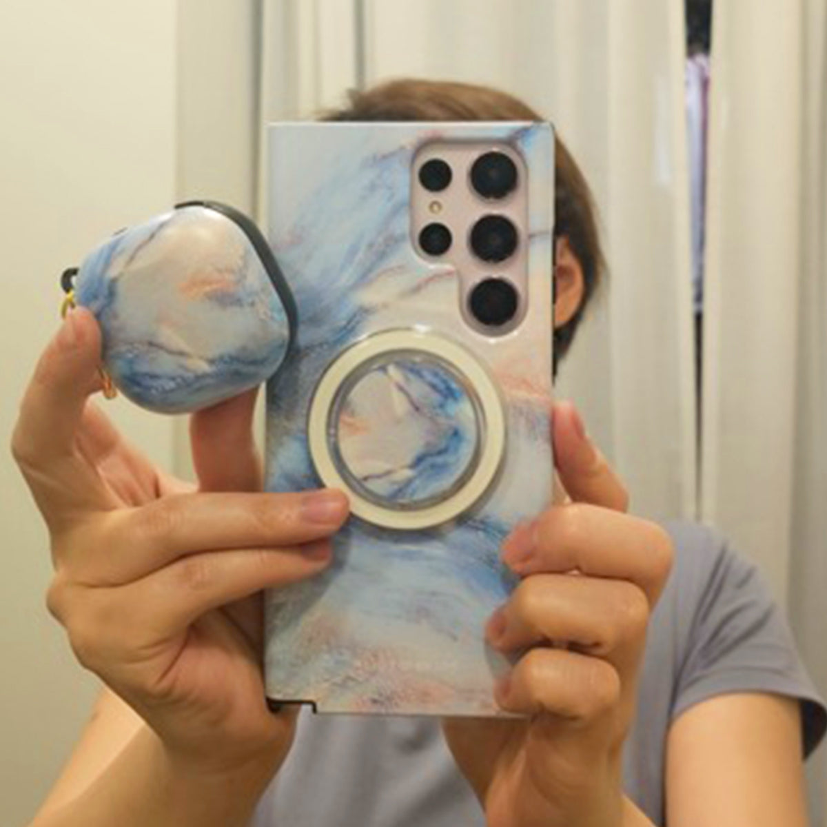 "The marble pattern design is so textured that it makes the entire phone look fashionable and tasteful, and it is also very convenient to use as a stand with the magsafe accessory. Big love~"