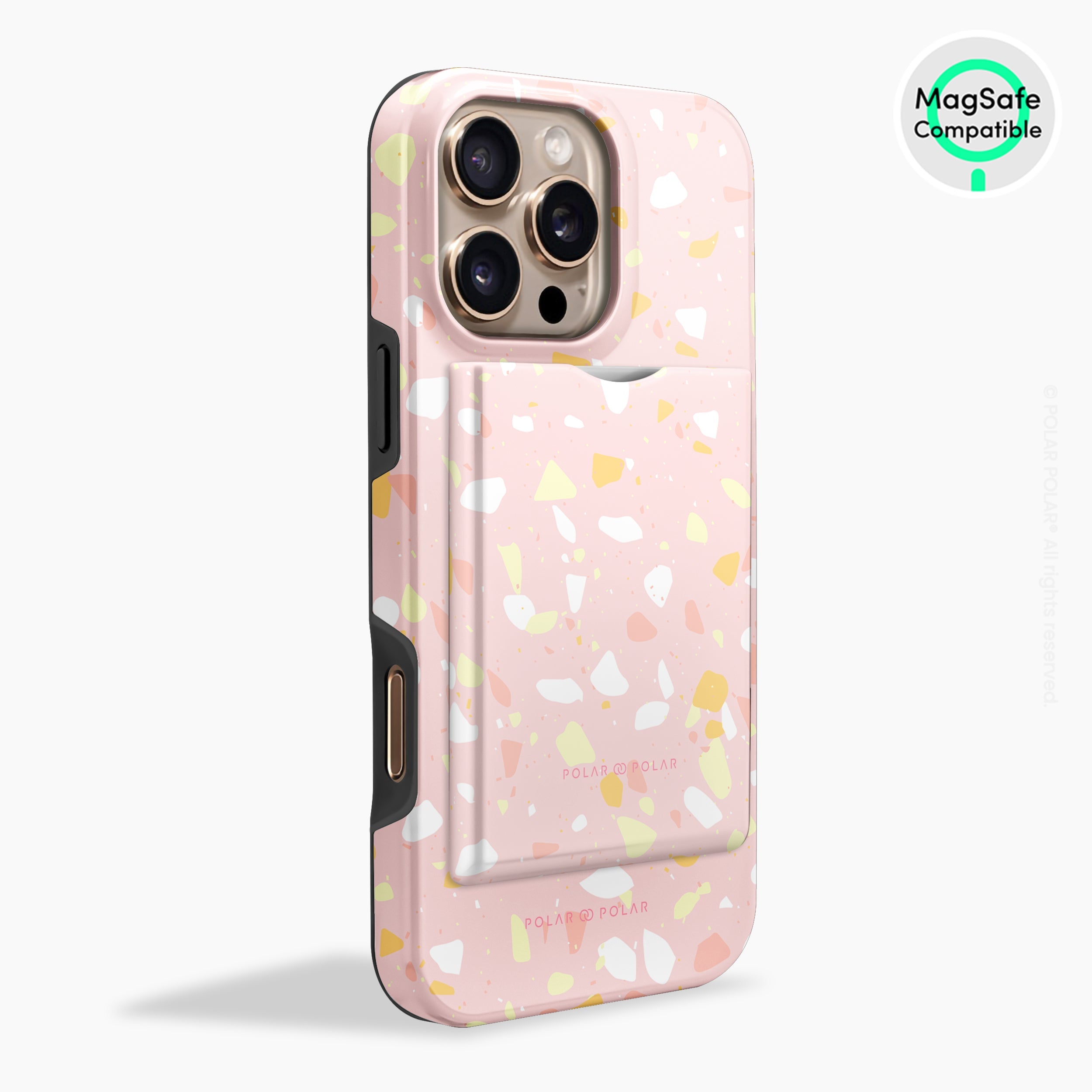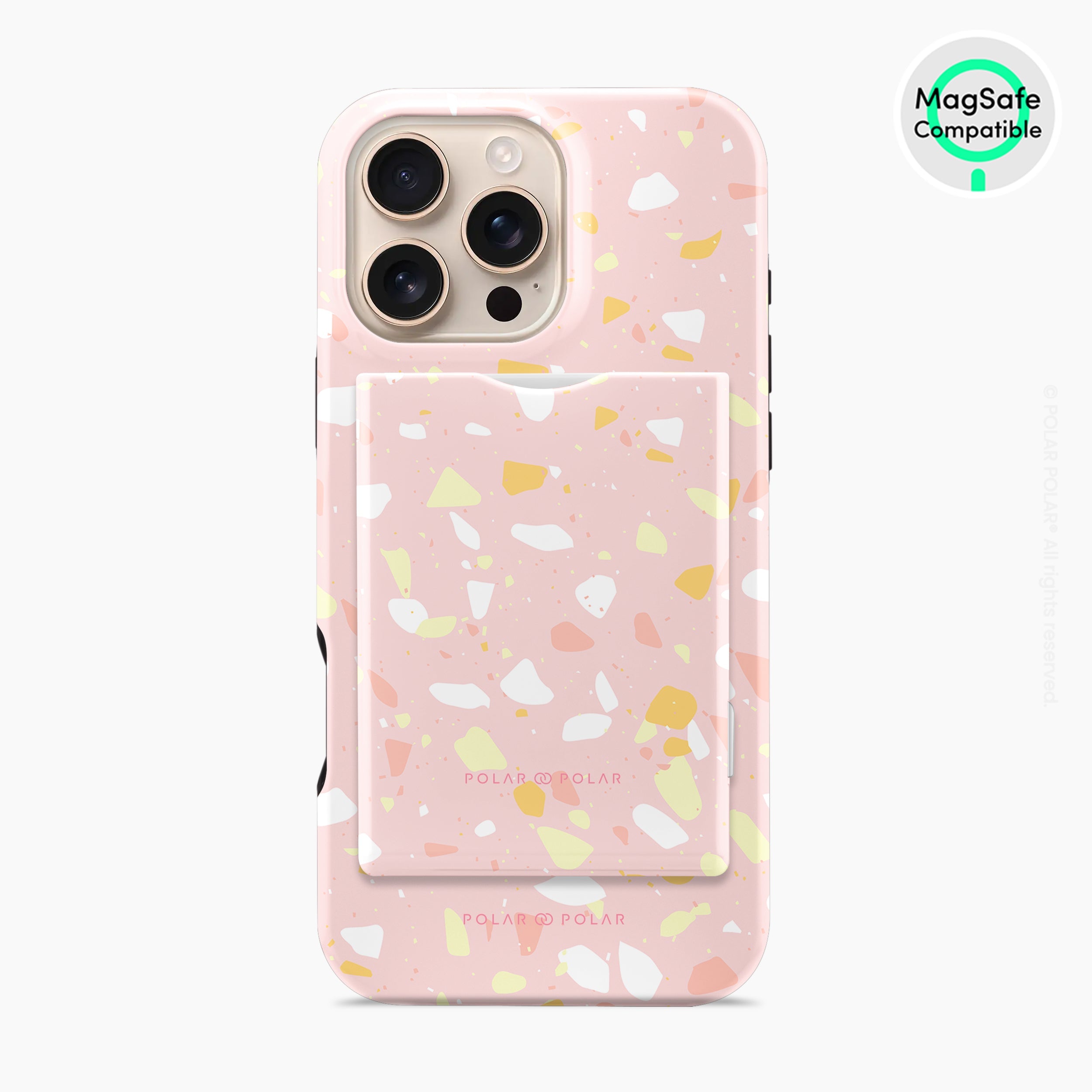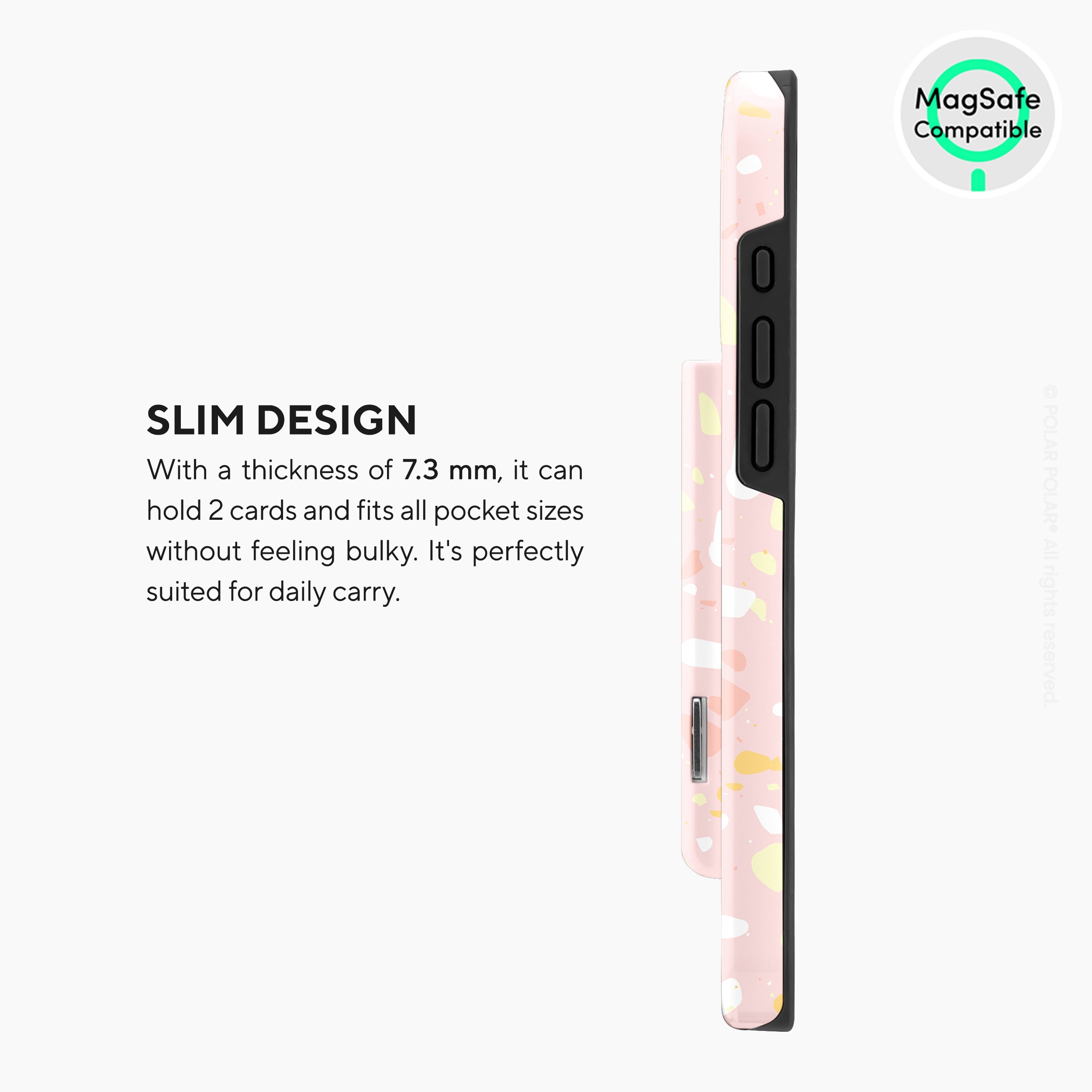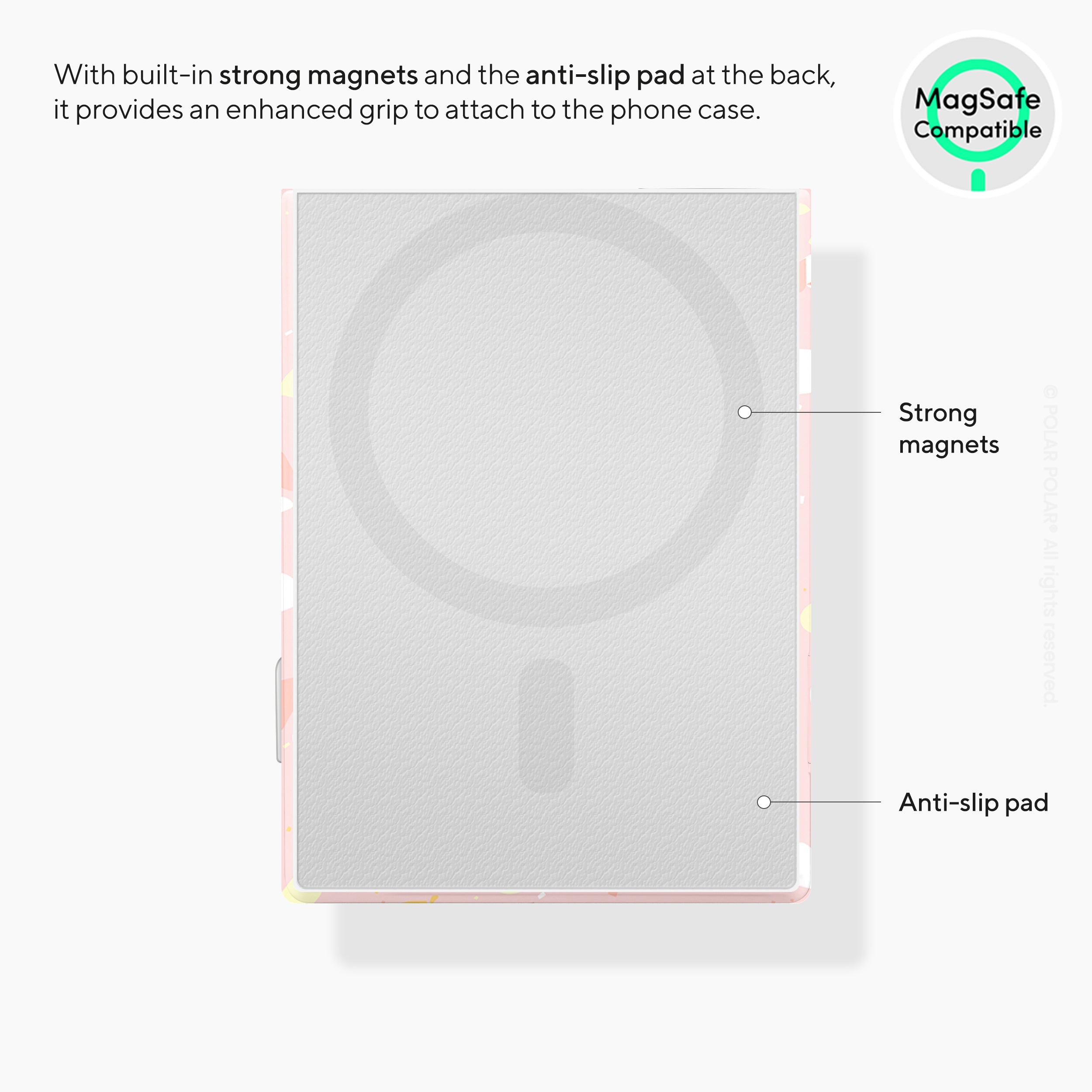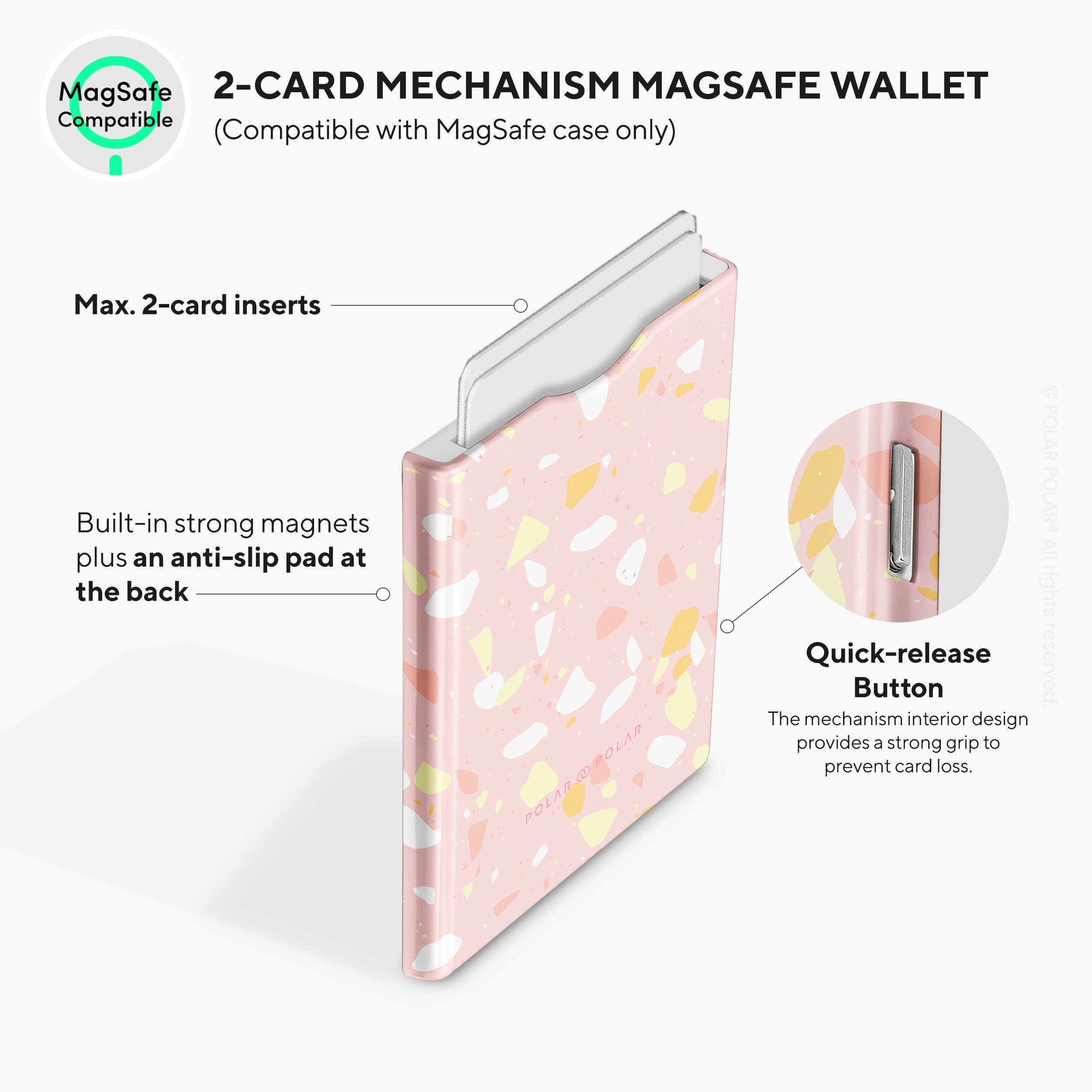 The slim hard MagSafe wallet confidently holds up to two cards with ease. Its expertly designed interior features a reliable mechanism that ensures your cards stay securely in place, reducing any risk of loss. With the quick-release button, accessing your cards is swift and effortless. Besides, the built-in magnets and anti-slip pad provide a strong and secure attachment to any MagSafe-compatible case.
