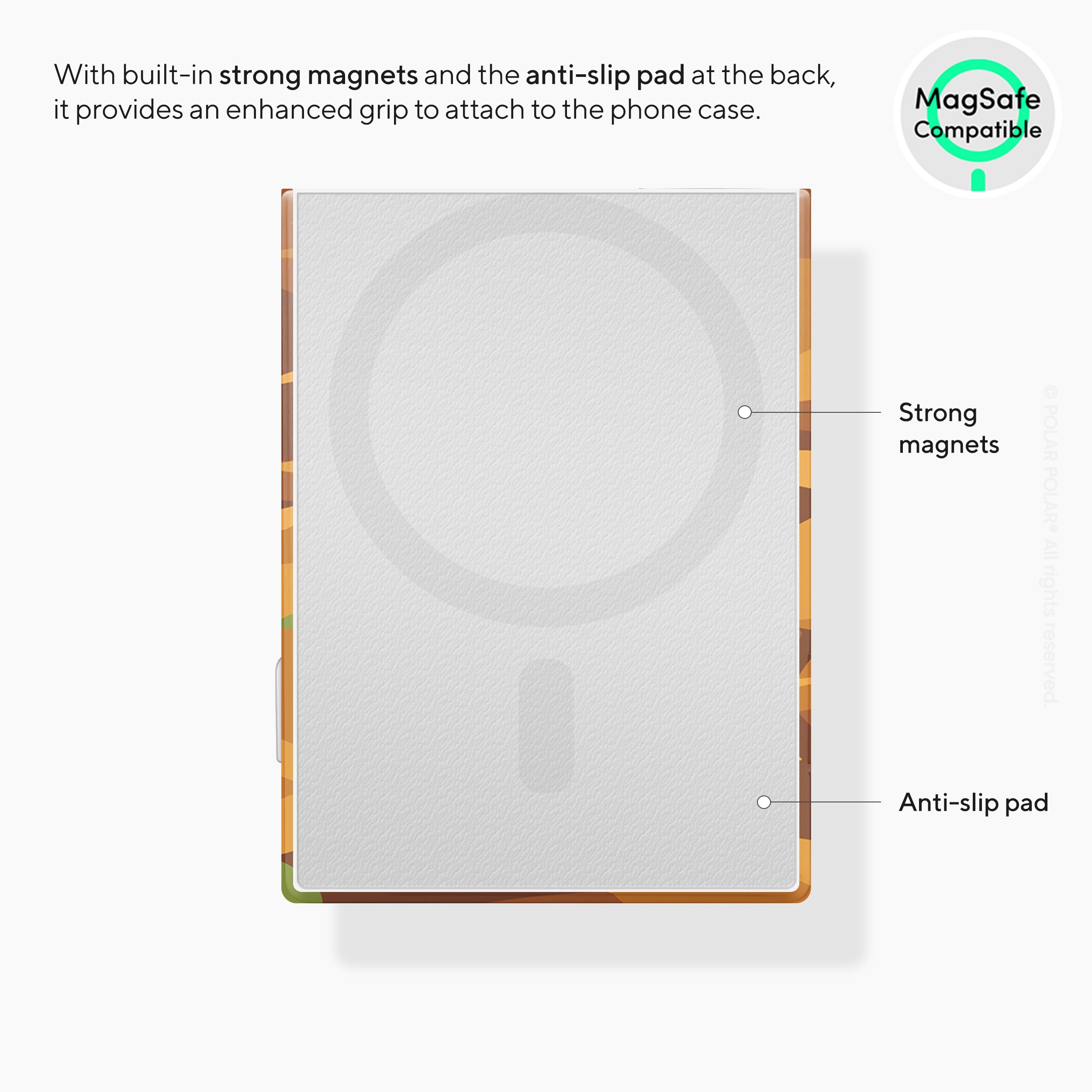 Anti-slip pad provides an extra strong grip to attach to glossy and matte phone cases.