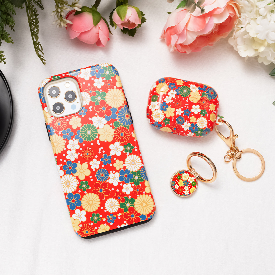 日系橙紅花紋 - Google Pixel 10 Pro XL 手機殼