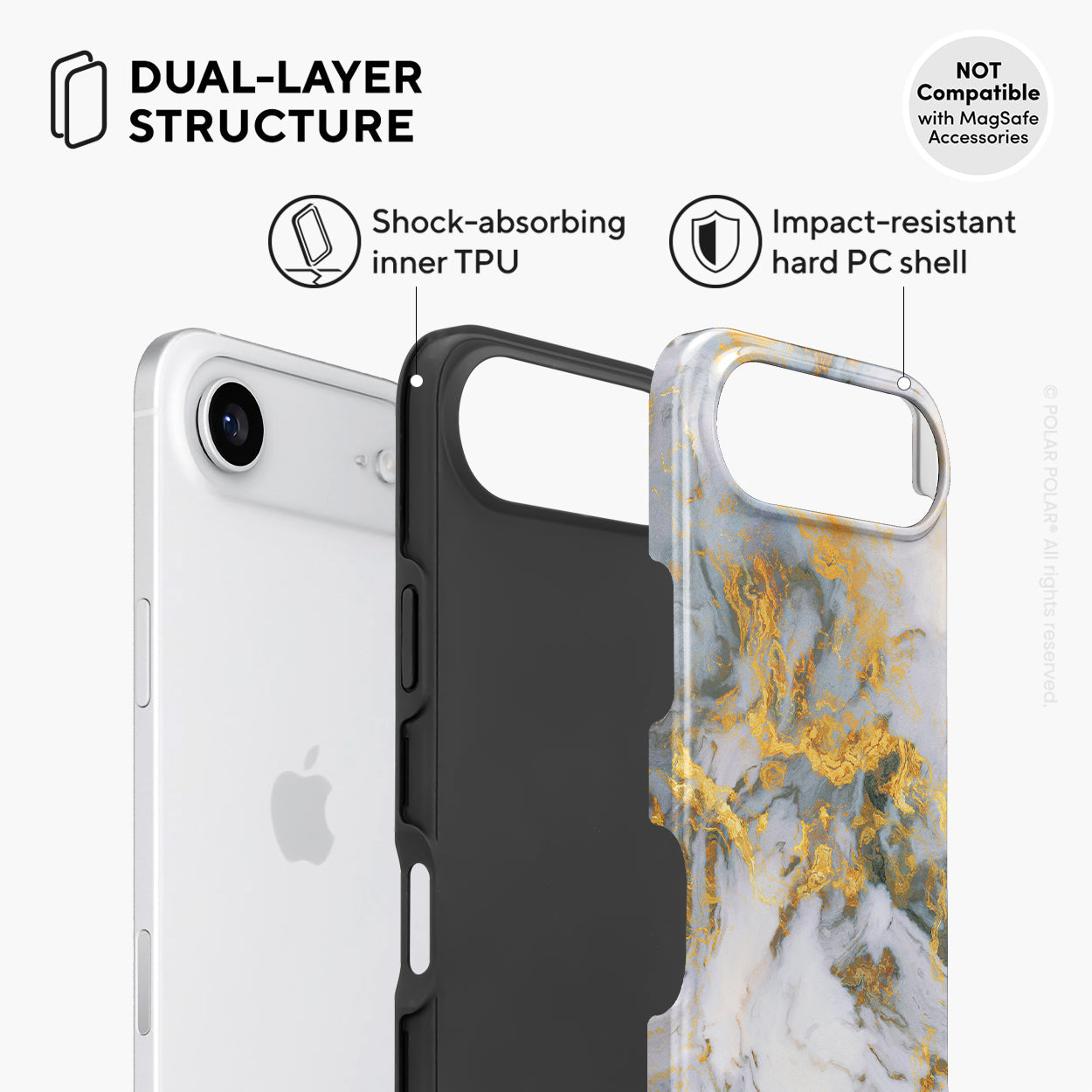- 雙層結構:硬PC外殼+軟TPU內膽