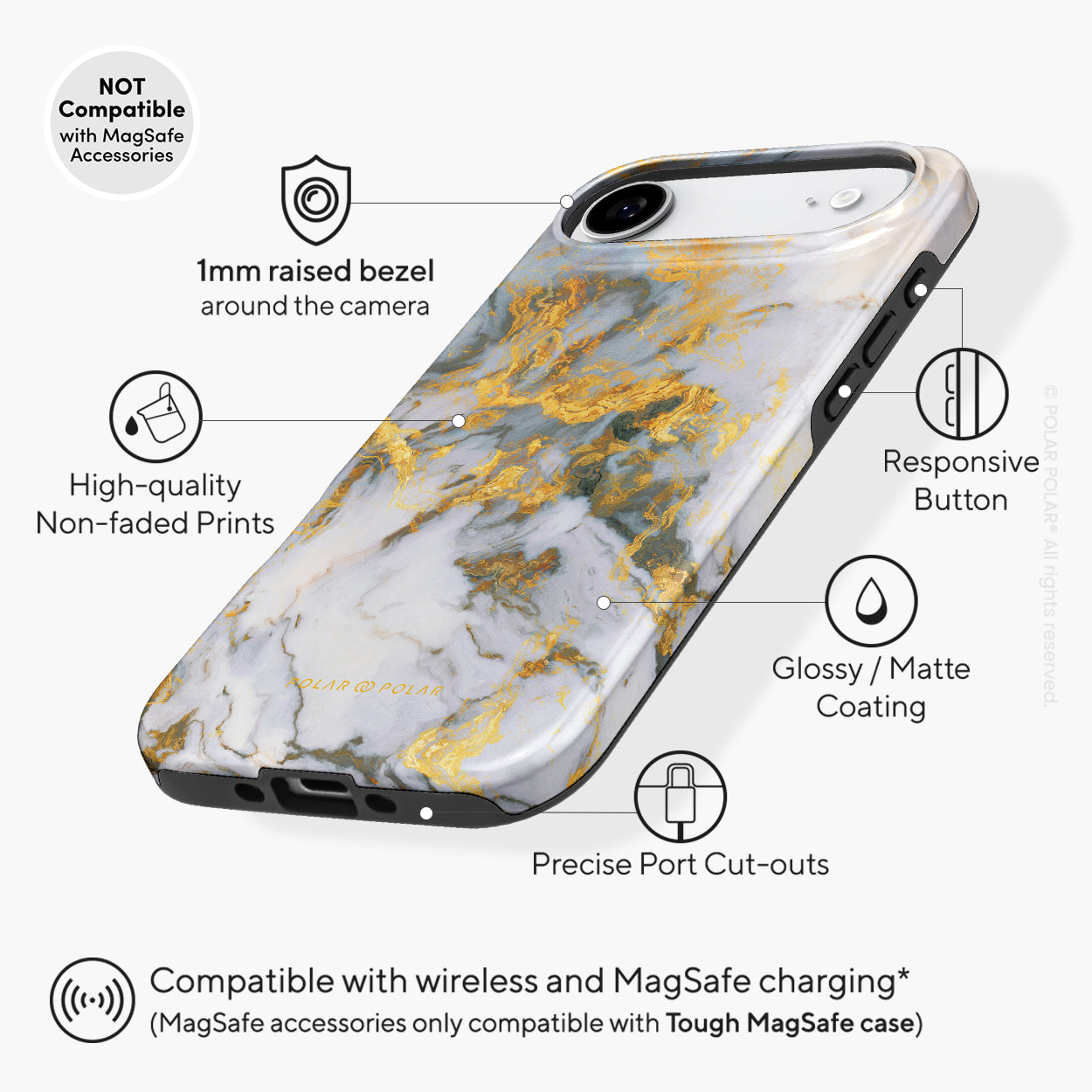 Compatible with MagSafe accessories such as MagSafe phone ring holder, MagSafe charger, MagSafe car mount and more.