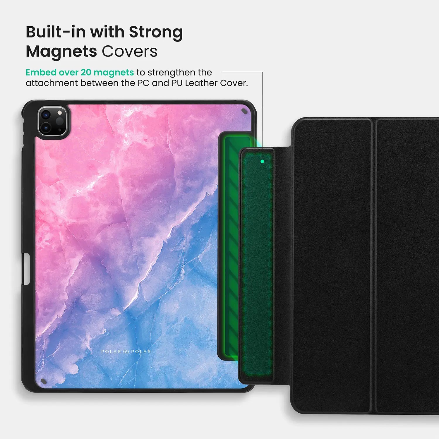 Embed over 20 magnets to strengthen the attachment between the PC and PU Leather Cover.
