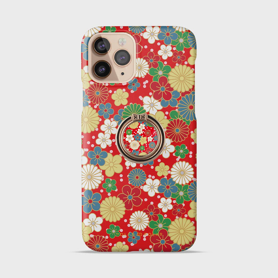 日系橙紅花紋 客製化 手機扣環支架(非磁吸)
